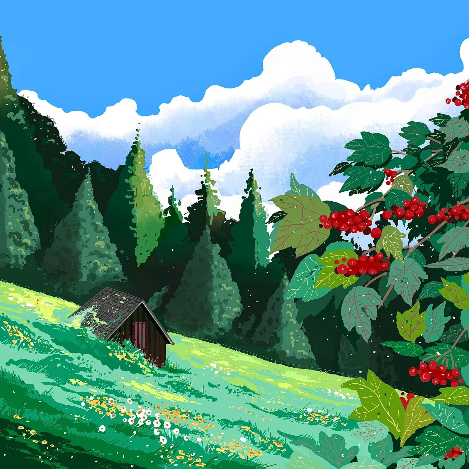Oh, in the meadow a red kalyna has bent down low,